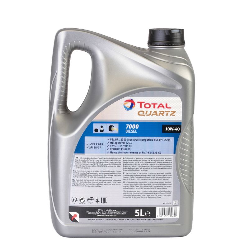 - TOTAL QUARTZ 7000 10W40 - Este un ulei multigrad pe baza sintetica, dezvoltat sa satisfaca cele mai exigente cerinte atat pentru motoarele pe benzina, cat si pentru cele diesel (autoturisme si vehicole industriale).