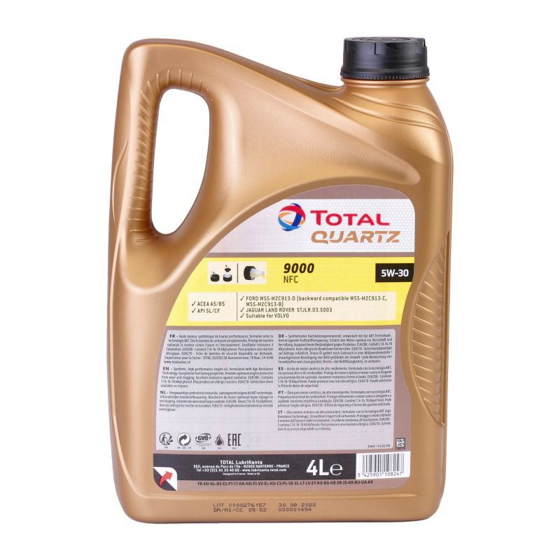 TOTAL QUARTZ 9000 NFC 5W-30 este un ulei de motor cu tehnologie sintetică avansată care a fost dezvoltat pentru a acoperi cele mai stricte cerințe atât ale motoarelor pe benzină, cât și ale motoarelor diesel.
