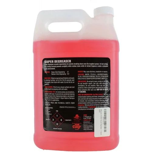 - Meguiars Super Degreaser - Degresant Auto depaseste asteptarile prin a dobori rapid chiar si cea mai puternica grasime. Actiunea sa rapida, lipsita de grasimi in continut previne petele de reziduri albe de pe suprafete, in timp ce aroma de helbal creeaza un mediu de lucru placut. Meguiars Super Degreaser - Degresant Auto este o produs foarte concentrat ce poate fi folosit cu succes in degresarea jantelor, compartimentului motor cat si pentru alte suprafete exterioare.
